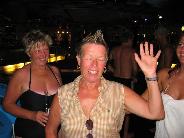 Nach einer Polonäse quer durch den Pool und über das Pooldeck aller Hochzeitsgäste, entschlossen